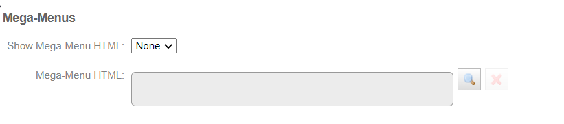 - SmartDoc picker that allows administrators to select a premade HTML Snippet or HTML Code Snippet SmartDoc to be included in the megamenu display