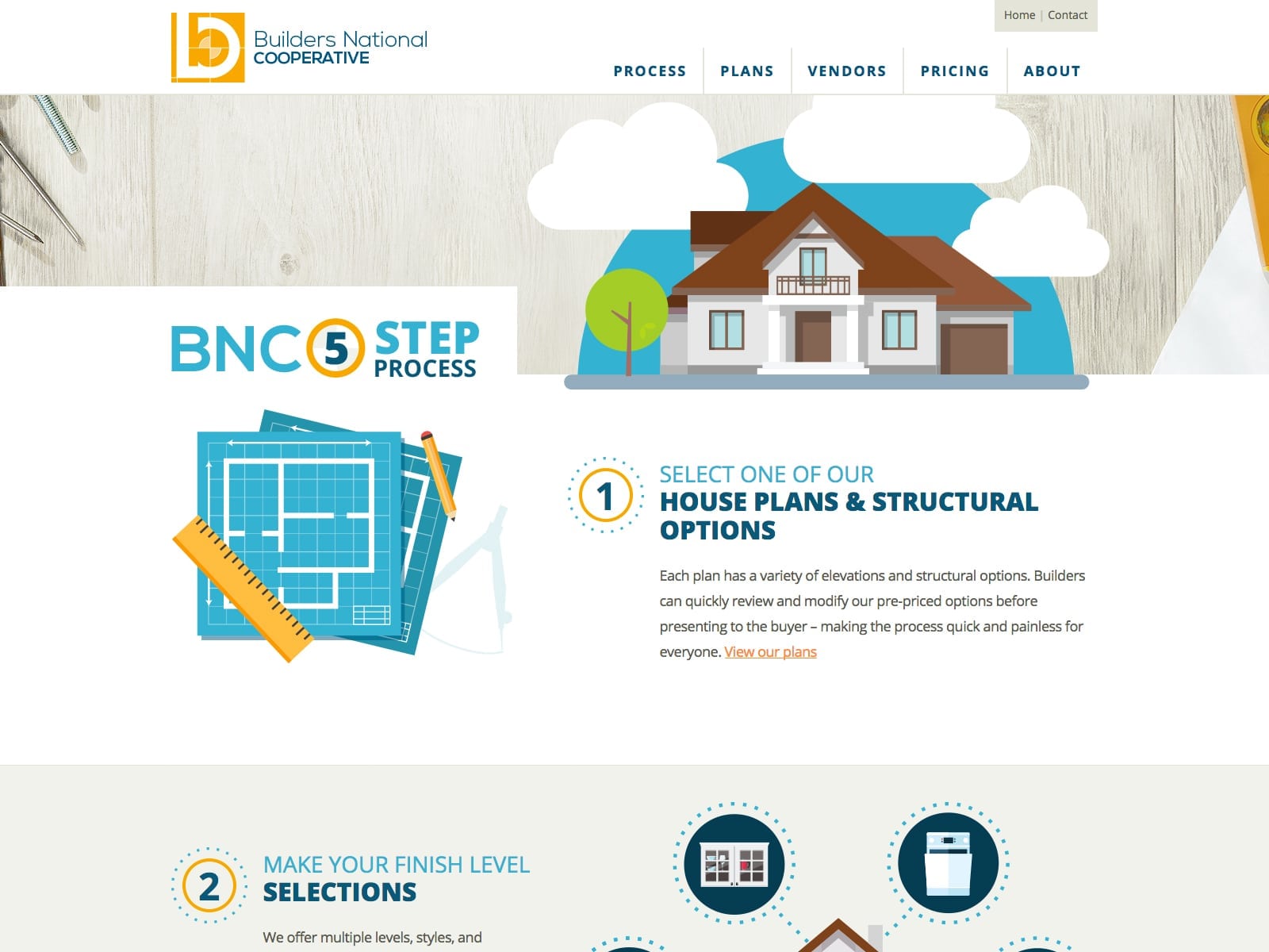 Builders National Cooperative needed a simple web presence to explain and sell a seemingly complex process. Having already designed their brand, Celerate had a palette to work from.