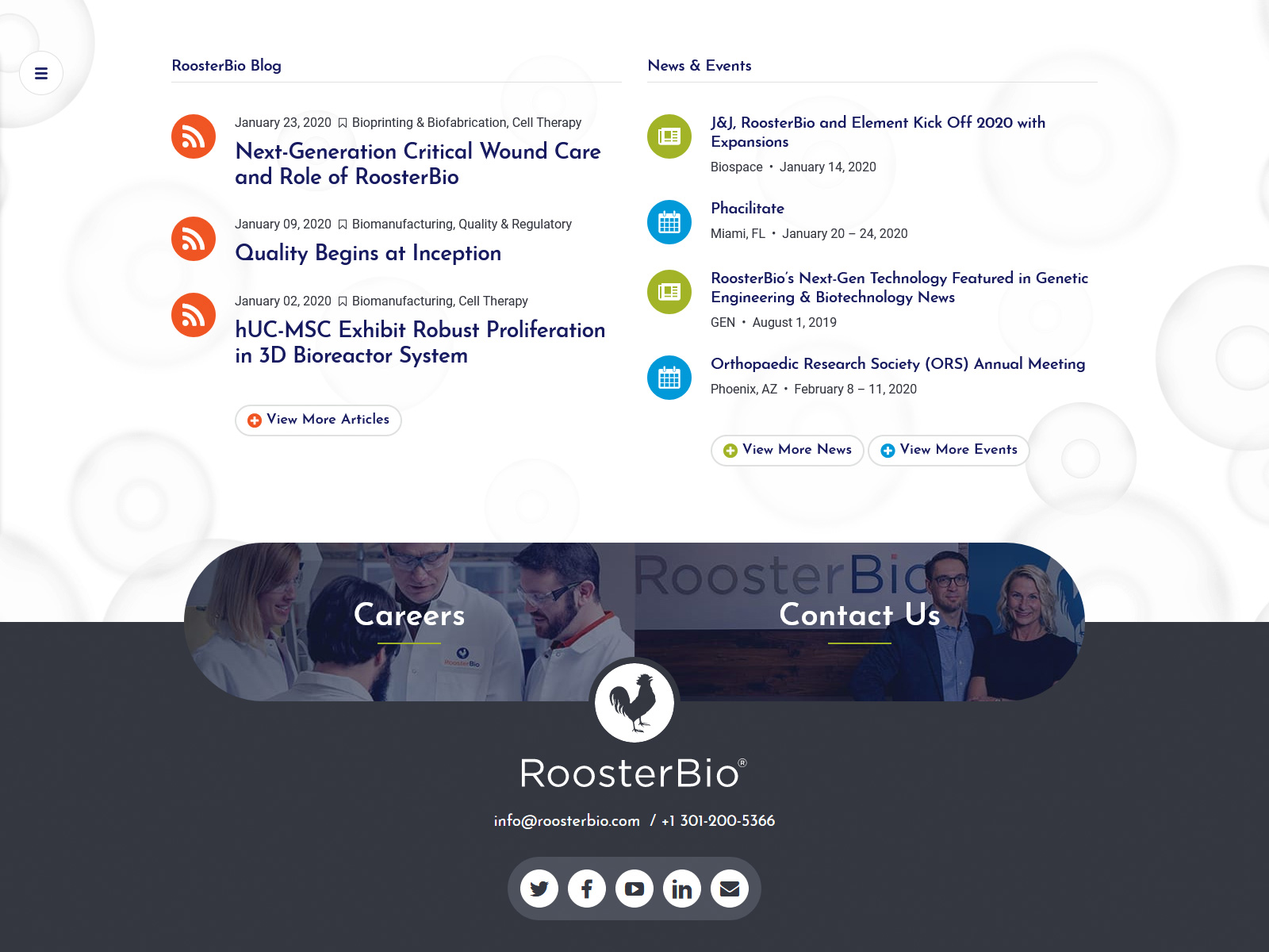 RoosterBio’s new website blends cell generation visuals with a graphic-reinforced breakdown of its services and product offerings. RoosterBio’s expertise is expressed in great detail through various informative pieces throughout the website. Many portions included custom infographics to help users visualize each step from cell generation to application. Celerate also designed and developed an e-commerce system for RoosterBio’s products and setup an extensive library of categorized resources. The resulting digital ecosystem, though complex, is well organized and an effective representation of RoosterBio’s brand and industry expertise.